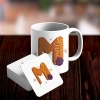 Hediye M Harfi Tasarımlı Kupa ve Bardak Altlığı Seti
